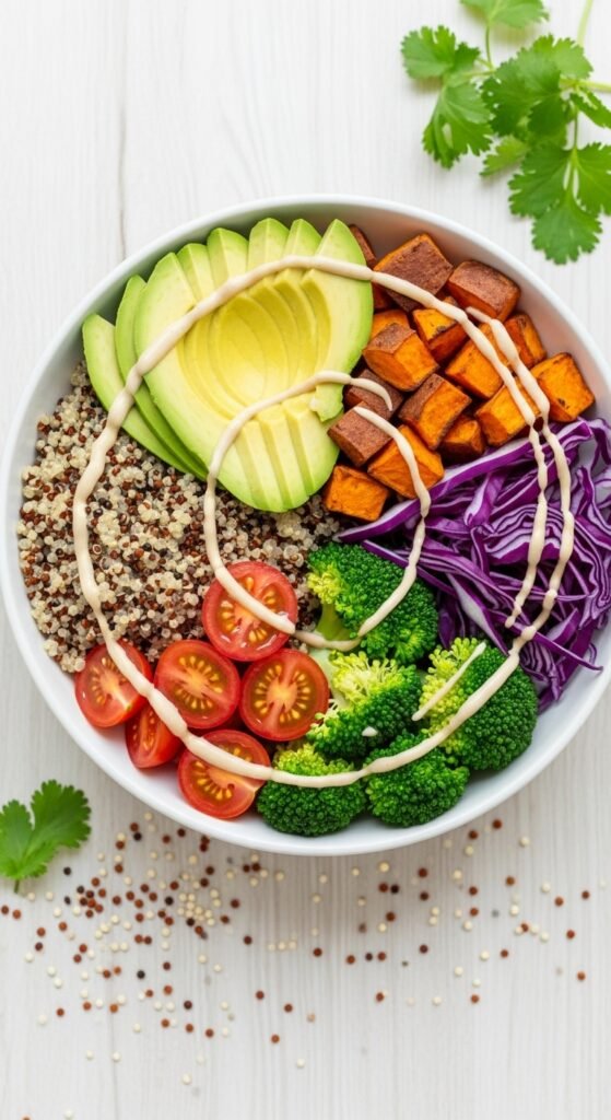 3. Gluten-Free Quinoa Veggie Bowl with Tahini Drizzle