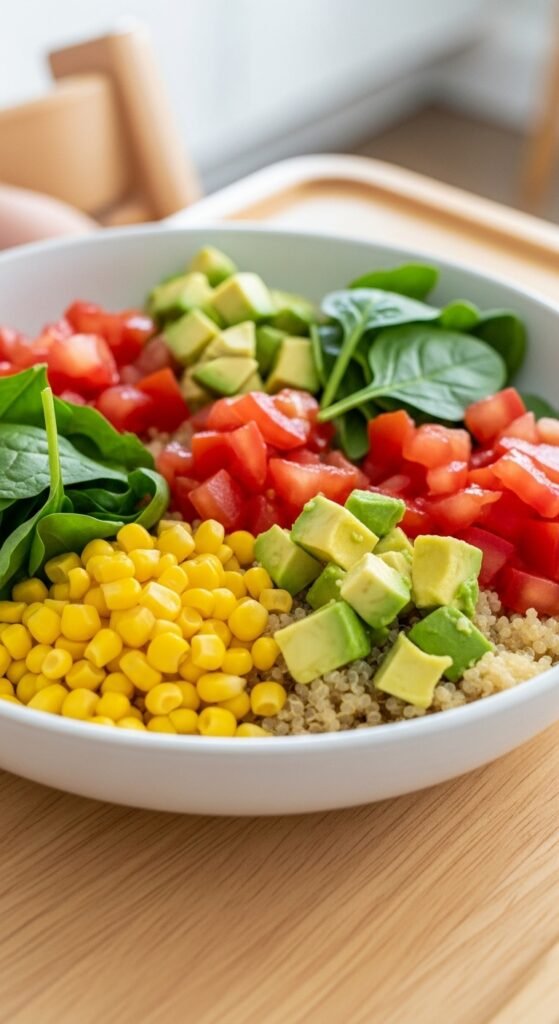 A quick bowl meal full of protein, fiber, and toddler-friendly veggies.