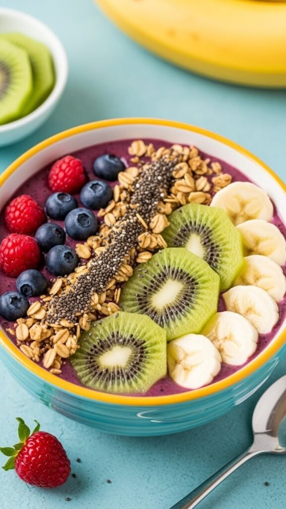 • Toppings: sliced kiwi, granola, chia seeds
