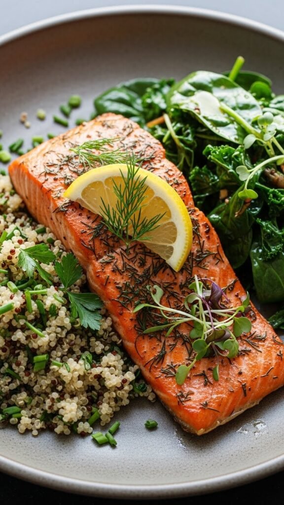 Why it works: Salmon adds protein plus healthy fats for a balanced dinner.
