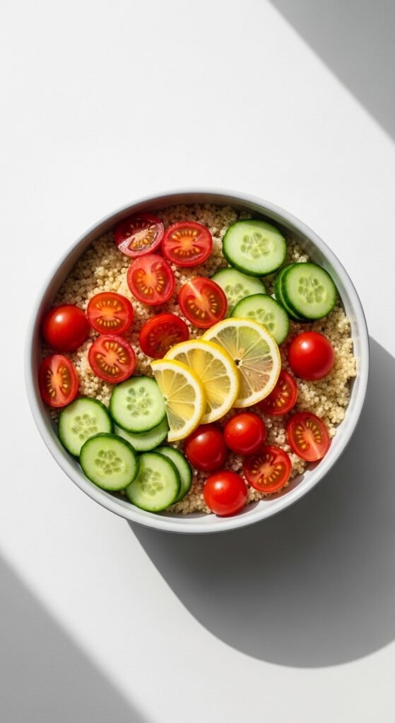 1. Lemon-Garlic Quinoa Bowl (Bloat-Reducing & High Protein)