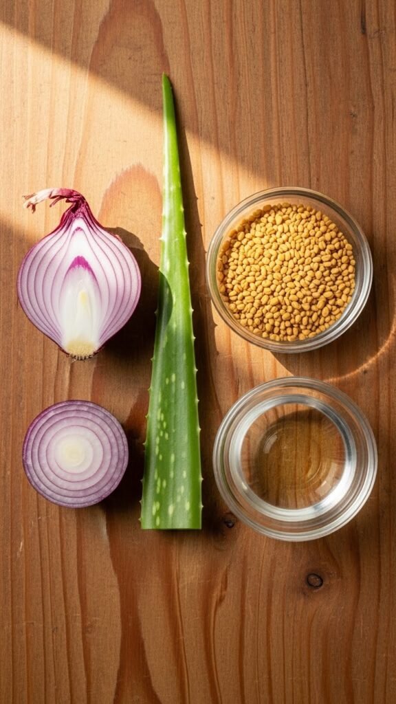 Onion juice is one of the most talked-about hair growth remedies at home—and for good reason. It contains sulfur, which helps improve collagen production and strengthens hair roots.