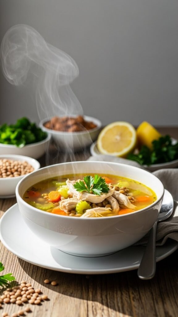 Lentils bring plant-based protein and minerals, while chicken adds lean, high-quality protein to make this soup both filling and balanced. Best of all, the recipe is simple, budget-friendly, and comes together in one pot—ideal for busy weeknights.