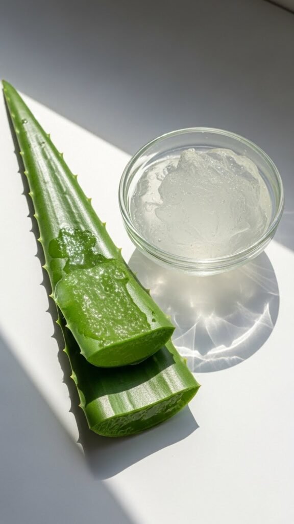 Fresh aloe gel or a fragrance-free, alcohol-free aloe product.