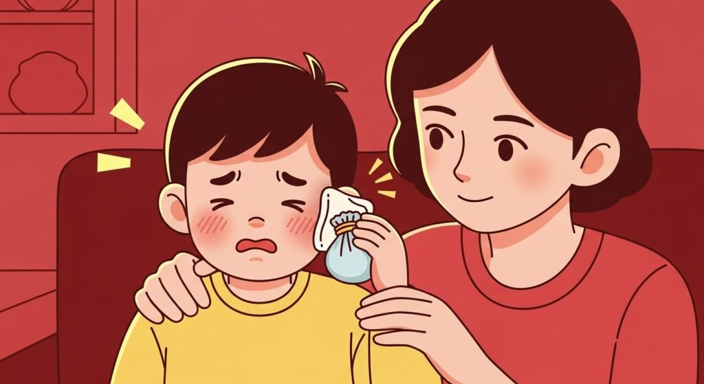 A simple warm compress placed over the ear can help reduce pain. The heat improves blood flow and relaxes pressure, making it especially soothing for kids. A warm towel or a reusable heating pad works best.