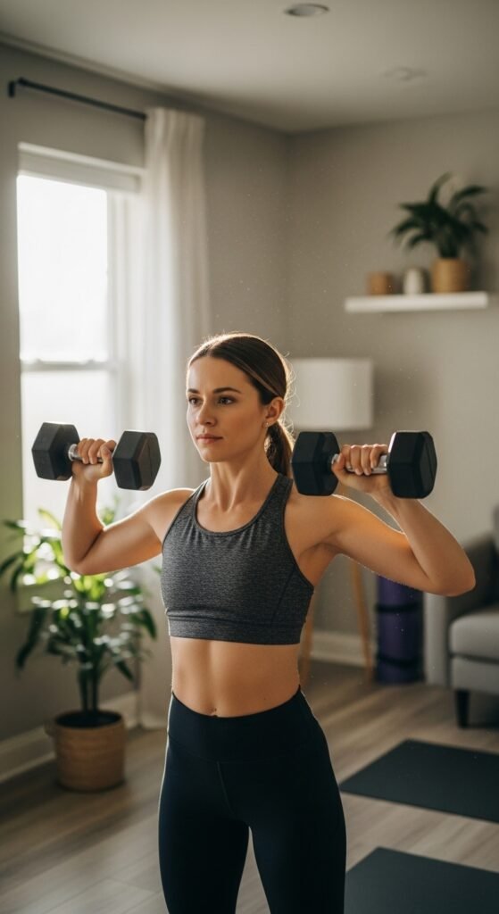 These workouts are simple yet effective. You can do them with dumbbells, resistance bands, or even body weight β ideal for small spaces or busy schedules.