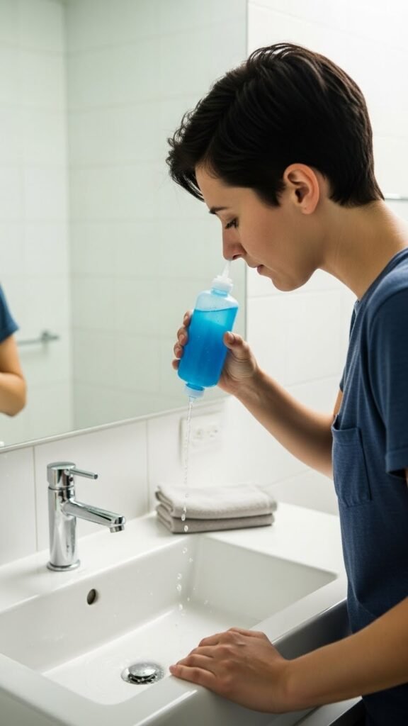 If there’s one remedy I swear by, it’s a saline rinse. I used to wake up with clogged nostrils almost every winter morning, but rinsing with warm saline cleared out allergens, dust, and mucus instantly.